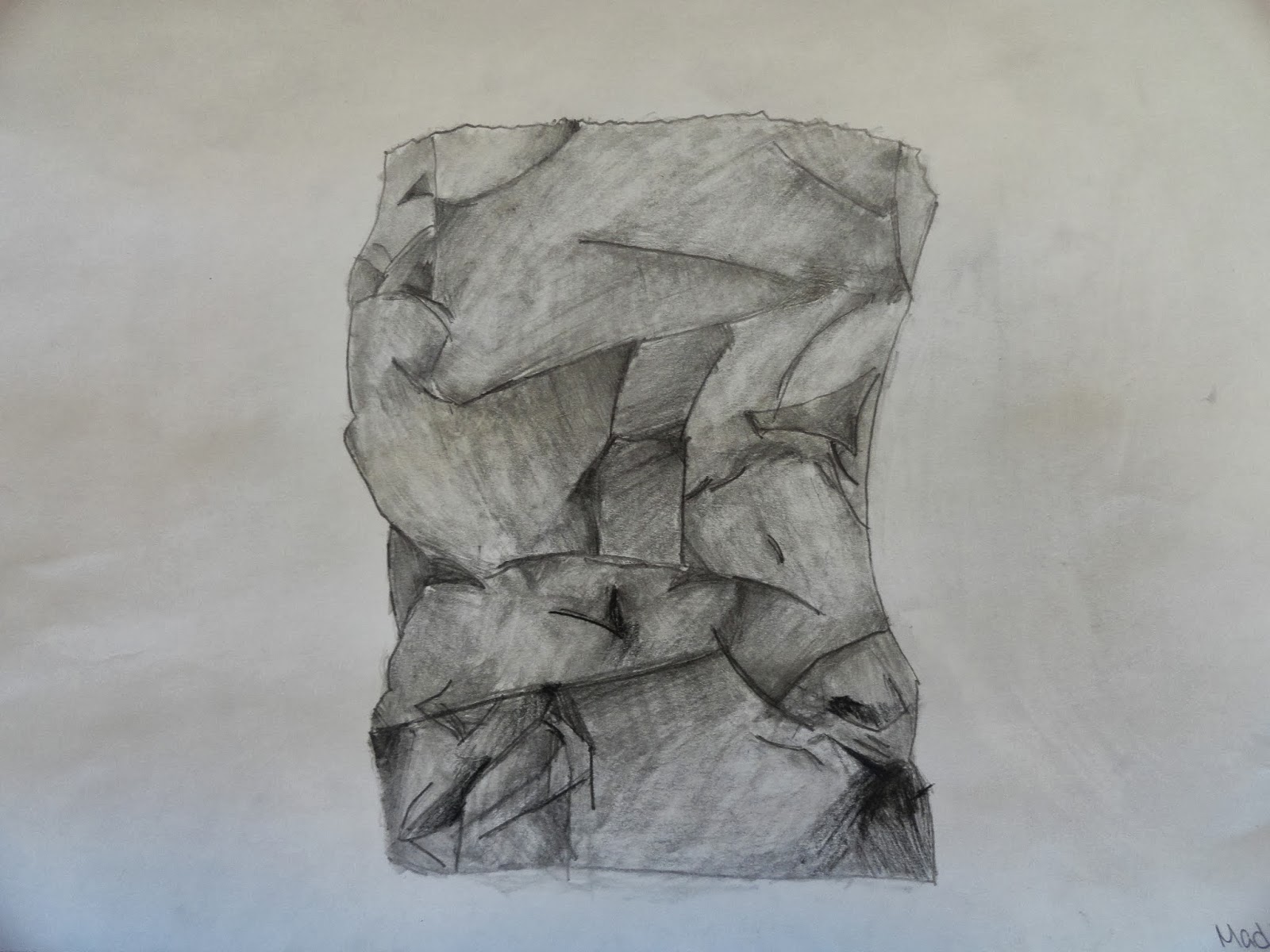 3b.) I believe I have grown as an artist with this piece because I learned how to shade and crate folds in a picture. I used different density pencil leads to draw this because the more dense a pencil is, the more dark your drawing will be. I learned the technique of creating folds in a picture by making it really dark where the crease of the fold would be. If you draw folds the same color as the rest of the bag, than it will look like you just colored in the bag. This piece improved my artistic vision by showing me it is possible to draw a crumpled up paper bag. Before I drew this and learned the different techniques of drawing this, I thought it was impossible to draw this type of picture. I learned the principles and elements of shading and value by drawing the paper bag. This project improved my creativity because I probably would not have drawn the bag all crumpled up, but I would've drawn is just a normal standing up paper bag. I also might not have drawn this at all.
